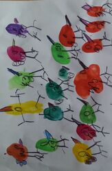 Die Kleinsten der Schule haben mit viel Fantasie wunderschöne Vögel gestaltet.