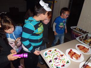 Auch in diesem Jahr gab es wieder viele Attraktionen. Neben dem Halloween-Schminken und dem Verkleiden hatten die Schüler die Möglichkeit, auch Skelette und Gespenster zu basteln. Wer sich traute, konnte von einem Gruselbuffet kosten. Hier gab es Köstlichkeiten wie Geisterschaumküsse oder auch Zombiefinger.